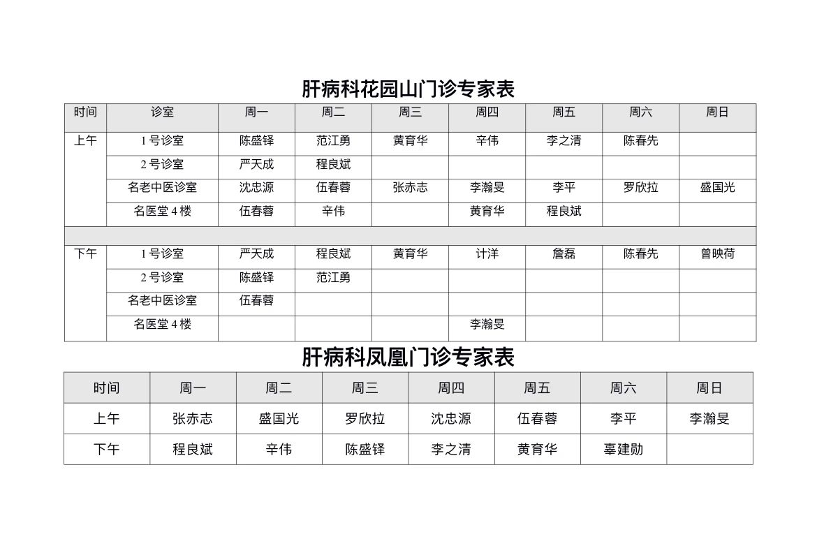 湖北省中医院花园山院区肝病科专家门诊时间: